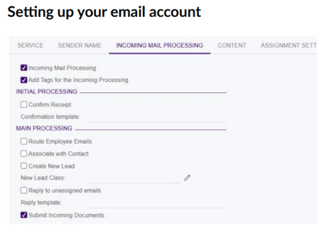 Step 1: Connect your email inbox. Navigate to Email Accounts and select the account you use for receiving supplier bills. Open the Incoming Mail Processing tab, then enable both the Incoming Mail Processing and Submit Incoming Documents options. Any PDFs attached to incoming emails will now be automatically scanned and queued for processing.